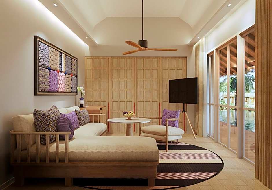 Boasting full-length windows with garden views, the air-conditioned suite comes with generous living areas and features bamboo blinds which can be rolled down for a unique and intimate experience. The private bathroom comes with aromatic bath products, plump towels and offers both indoor and outdoor shower options.